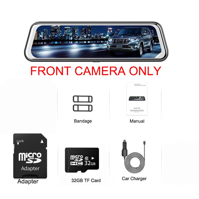 24H Parking Mornitoring Car Dvr 10 Inch Screen FHD 1080P Camera With Stream RearView Mirror Night Vision Video Recorder Registrator Dash Cam Dual Camera